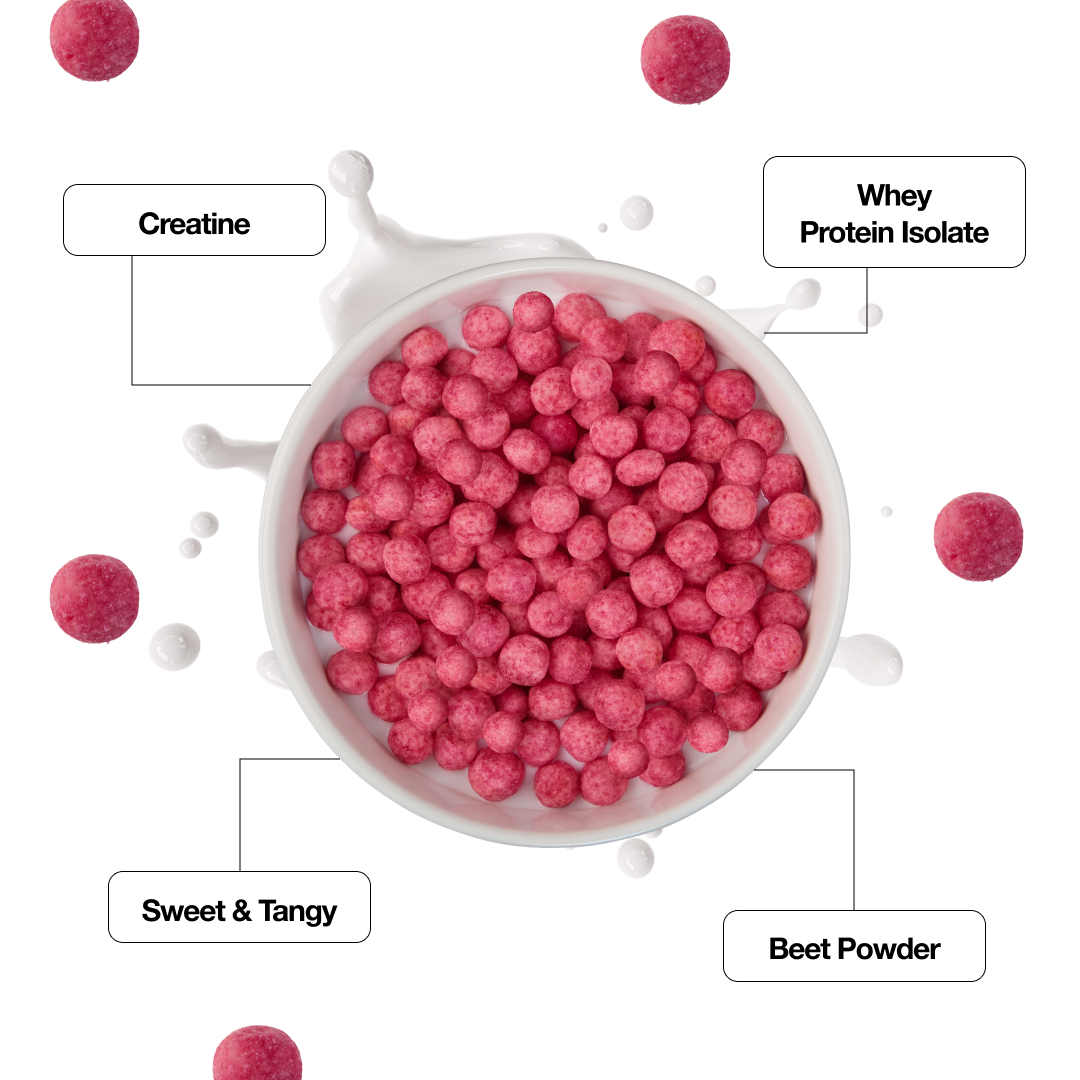 High-protein cereal with creatine to help fuel strength, recovery, brain power and keep you fuller, longer. Made with high-quality ingredients and no B.S. Tastes sweet and tangy, like a nostalgic childhood favorite.