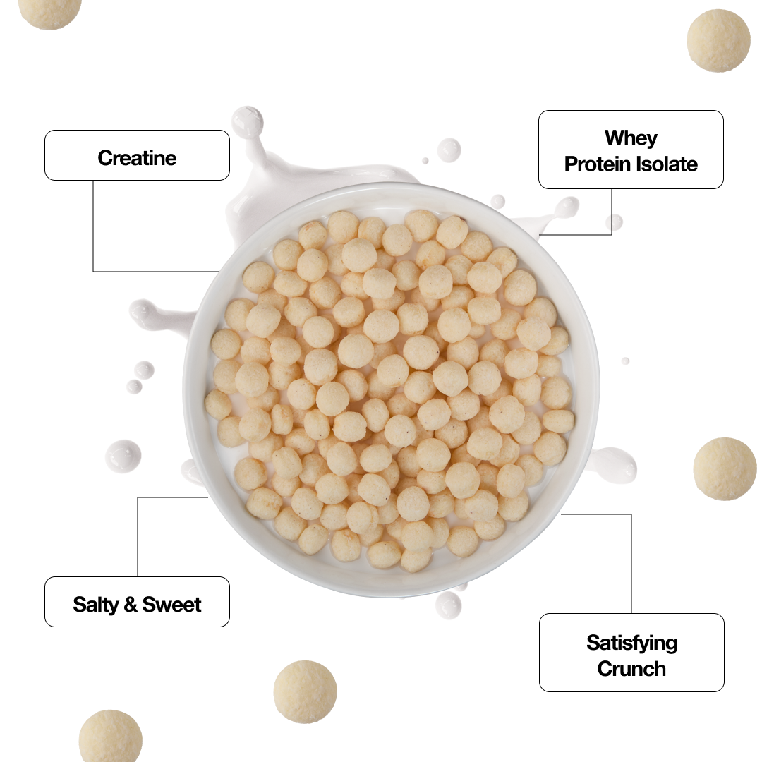 High-protein cereal with creatine to help fuel strength, recovery, brain power and keep you fuller, longer. Made with high-quality ingredients and no B.S. This unique flavor starts sweet, then turns savory in a delicious twist.